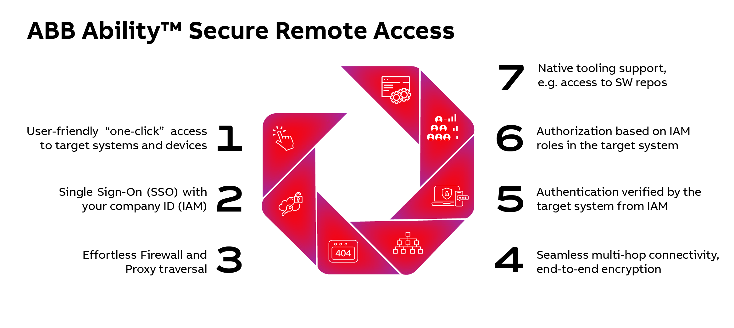 The solution lies in striking a balance: How can we maintain the reliability of legacy systems while utilising the agility and insights offered by modern technology? ABB Ability™ Secure Remote Access (ABB Ability™ SRA) is a solution crafted for OT and ICS environments. The aim is to deliver streamlined, secure, remote access that enables businesses to adopt innovative solutions while safeguarding the core components of their infrastructure. It is intended to maximise the potential of operational data without sacrificing stability.