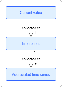 Each HistoryCollectionTemplate defines the chain of aggregated time series using its property "Template". The default templates consist of three periods: 1 minute, 1 hour and 1 day. The 1-minute aggregate is collected from raw time series, 1-hour aggregate is collected from 1-minute aggregate, and 1-day aggregate is collected from 1-hour aggregate. The time periods and collection chains can be freely configured and new ones added.