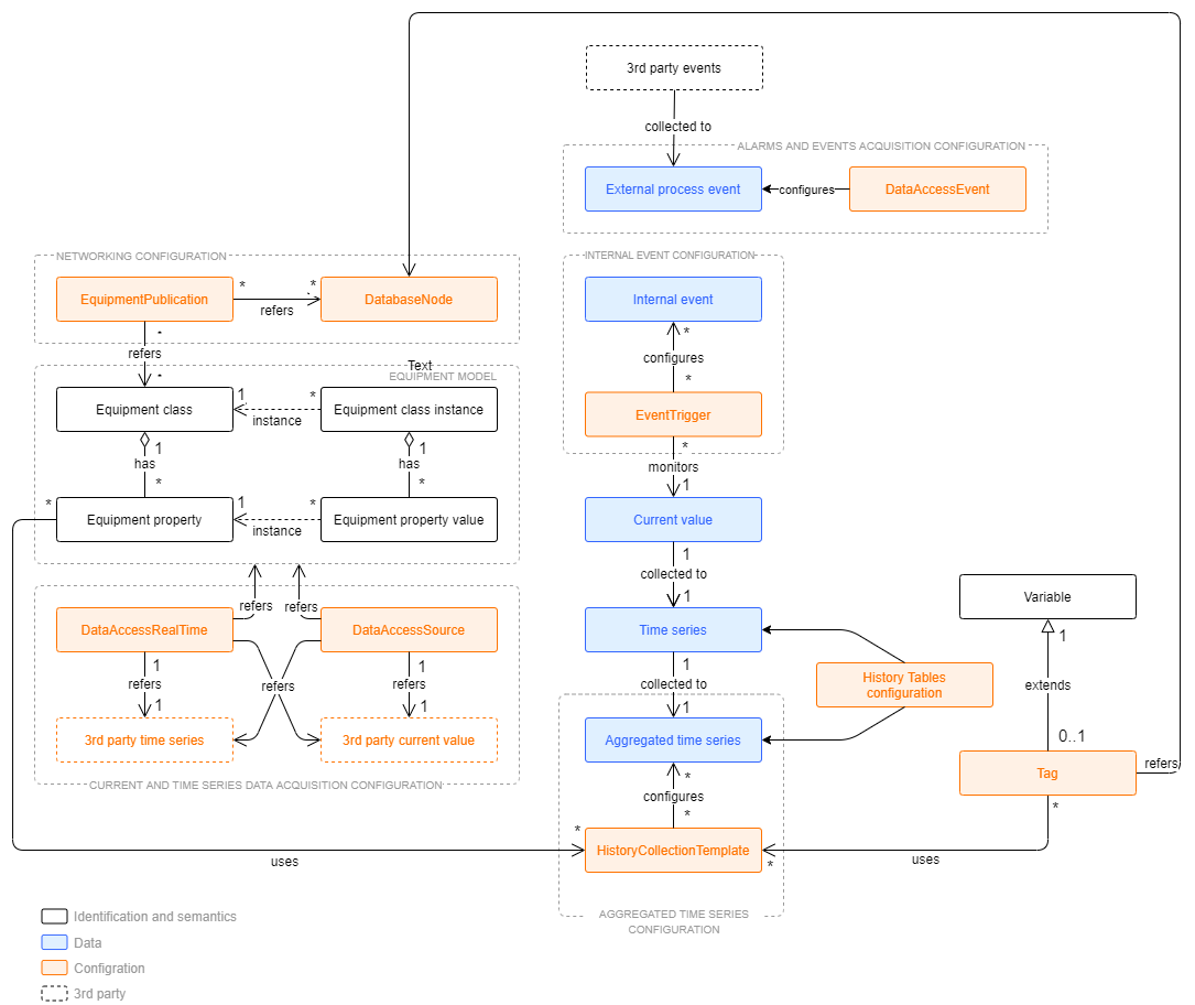 The picture above extends information modeling picture by addressing also configuration. Configuration related terms are highlighted with orange and time series data are highlighted with blue color.