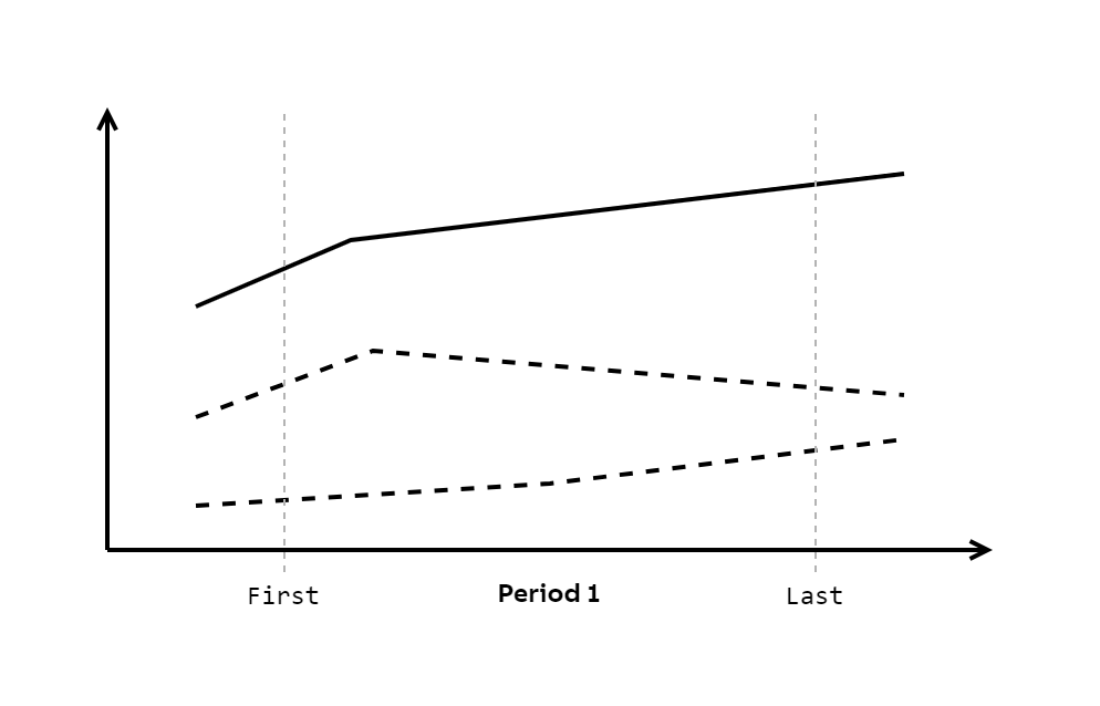 Let's focus on a single calculation period. The graph below shows the same data as the graph above but displays only the first period.