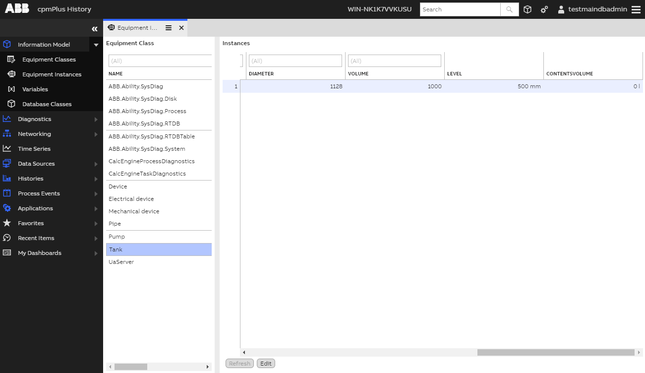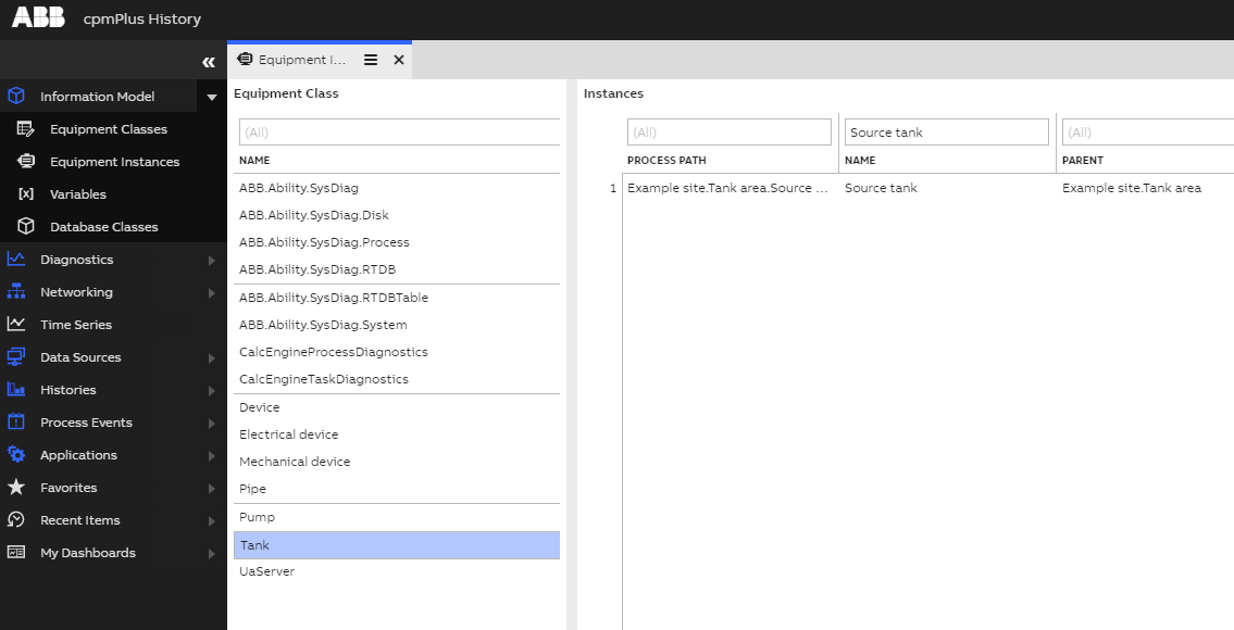 - On the left side navigation, under Information Model, select the Equipment Instances view.