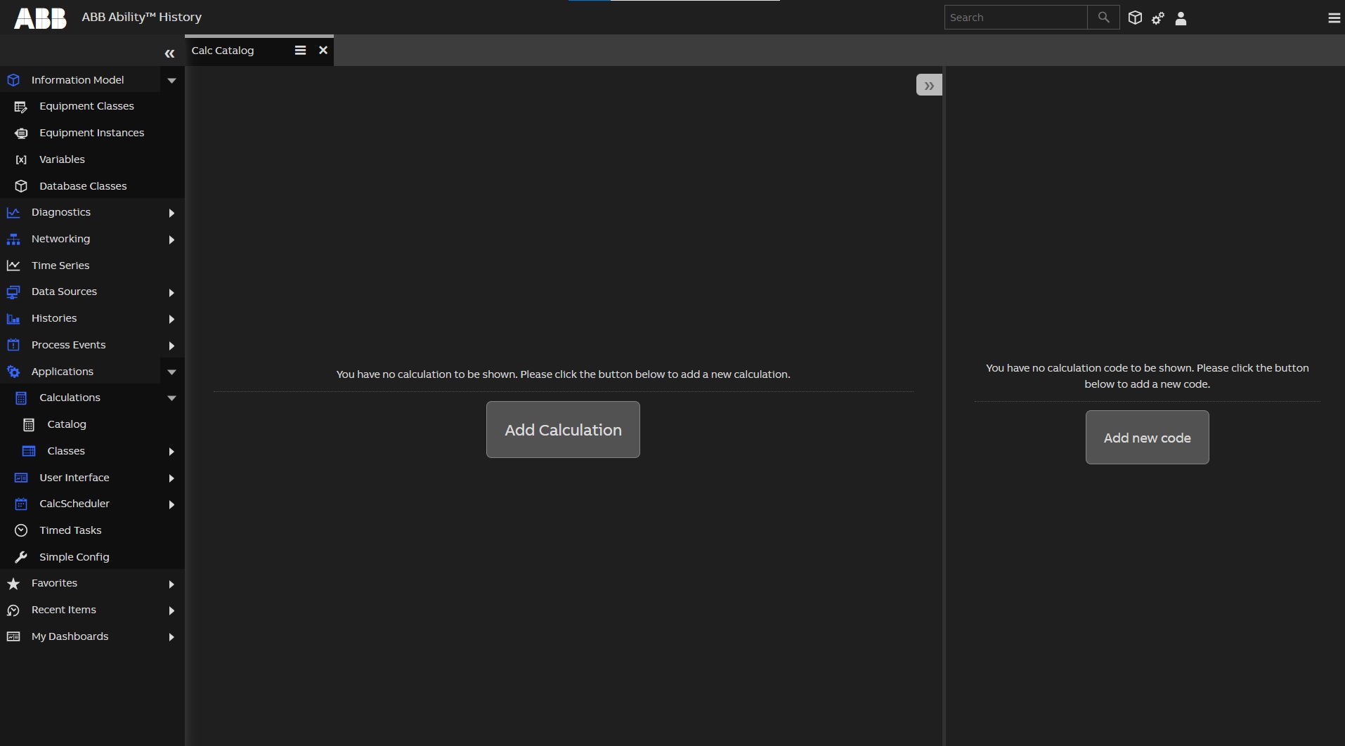 To create a new calculation, open up the Calculation Tool view from the left side navigation under Applications > Calculations > Catalog: