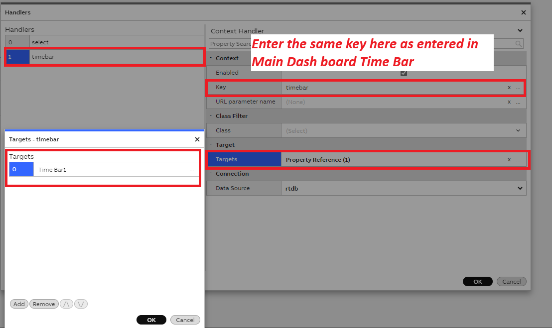 - Target: Widget: Time bar (now we choose our time bar widget as the target)