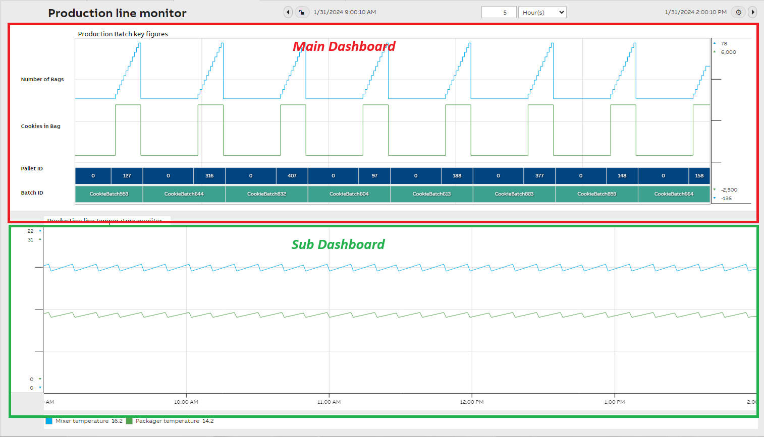 Finally, if we close the edit modes on both dashboards, go to our main dashboard and change the time span on our time bar, both the charts should show data within the same time span and change data accordingly.