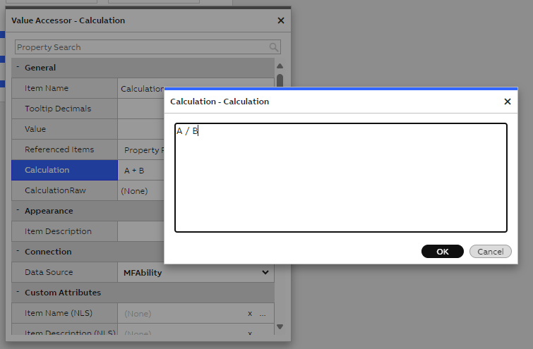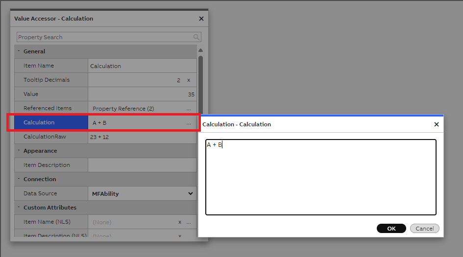 After selecting Calculation as the Value Accessor, you need to specify the calculation formula.