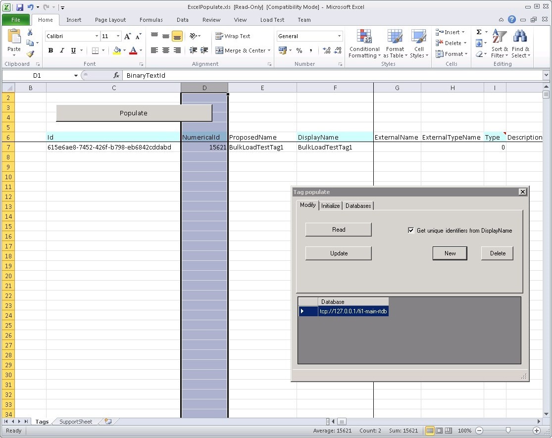 The "Initialize" tab is used to declare which Tag class properties are visible in the Excel sheet. The 'Read' button is used to restrict the set of tags that are fetched from the database. In the very first phase, the content of this tab is not needed.