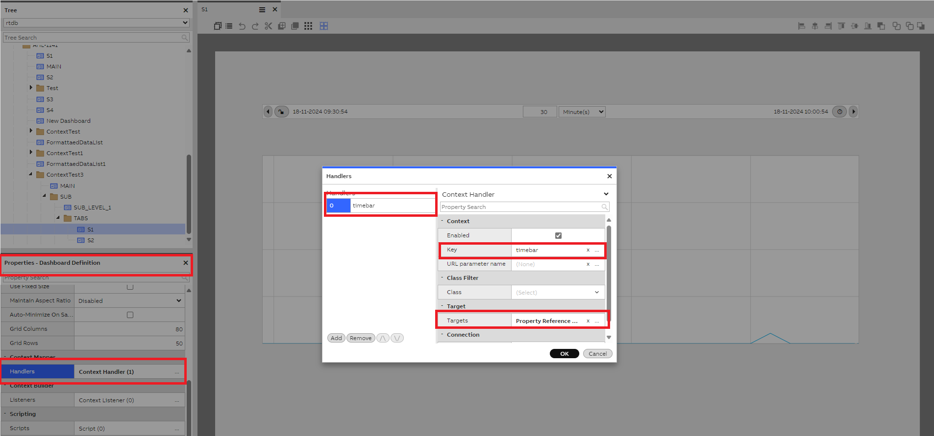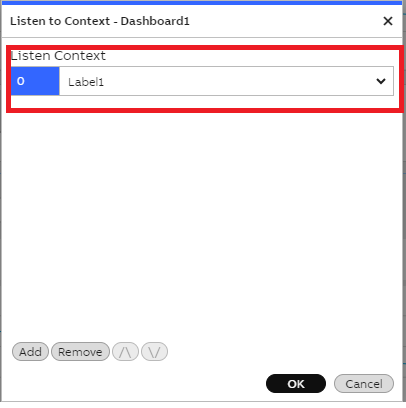 Open the sub dashboard widget properties and add a new Listen Context and select Label widget as shown in the below screenshot, and apply changes.