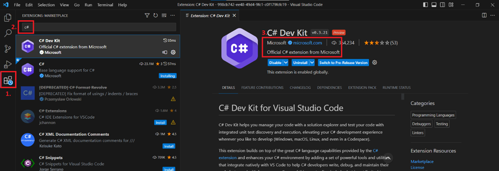 CalcDebugger utilizes the Visual Studio Code. After installing Visual Studio Code, please also install C# plugin: