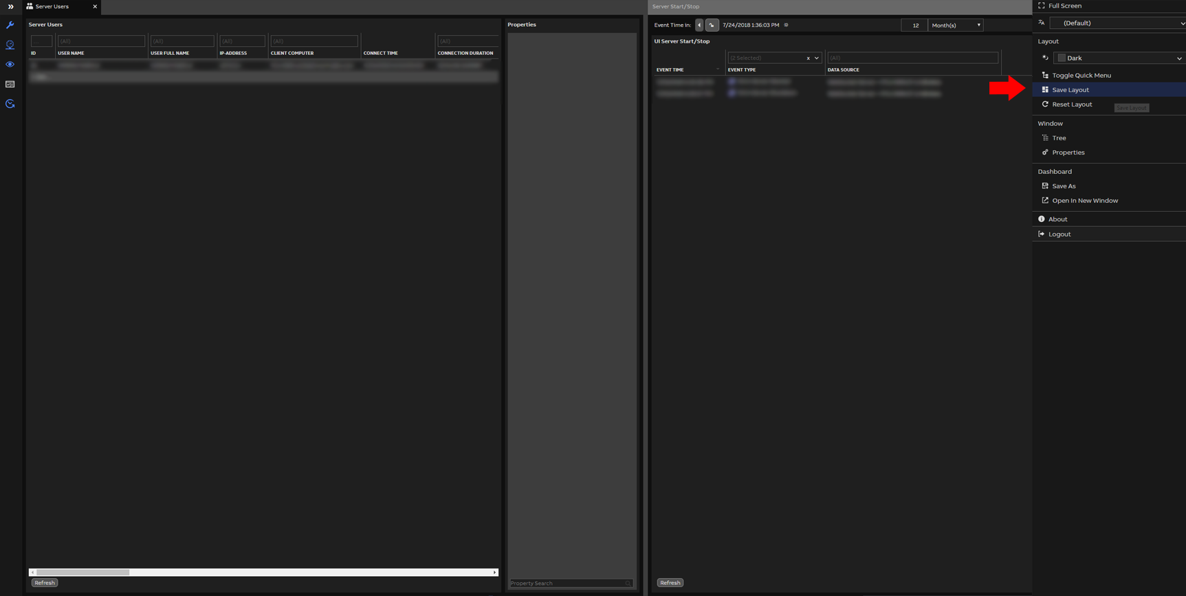 You can also change the default layout of the tool. Let’s say, you want the Server Users with Server Login/Log off next to it (both under Auditing), to be the default layout. Meaning this view will open, when you go to the tool with your credentials.