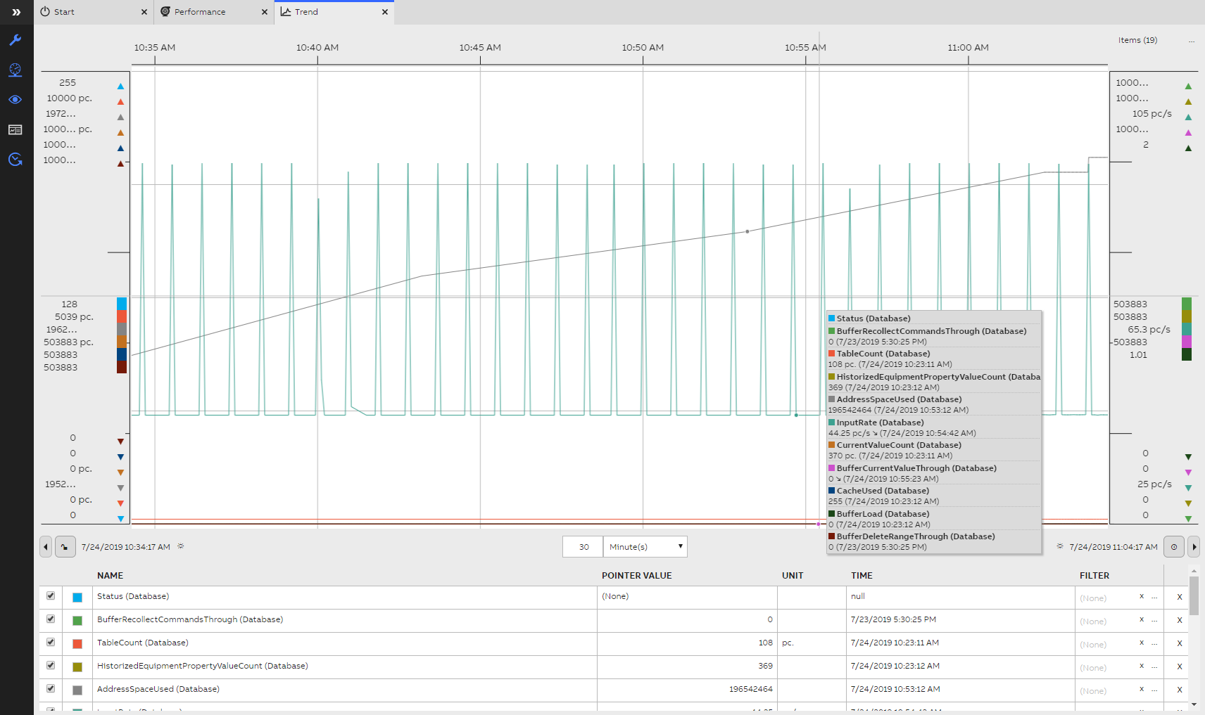 First, navigate yourself to Diagnostics -> on the System Performance. This opens a dashboard, where all relevant performance data is displayed. You can find the database size as the second lowest trend on the left side of the monitor.