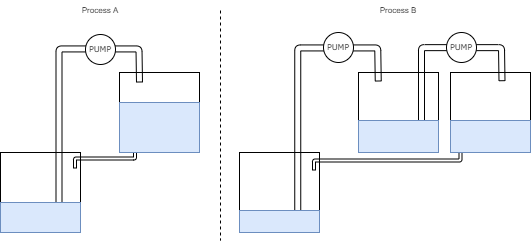 In the picture below you can see an example setup of two processes; Process A and Process B.