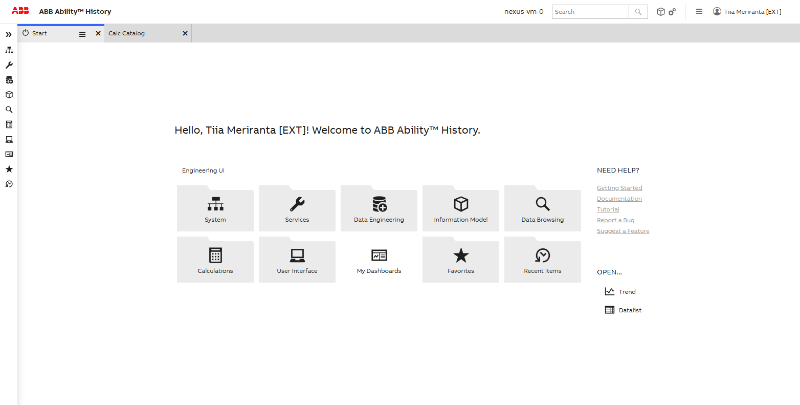 Locally on the server, the Engineering UI can be accessed using a shortcut "ABB Ability™ History - Engineering UI" on the desktop or navigating to https://localhost/history.