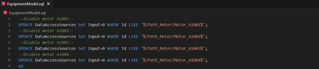 UPDATE EquipmentPropertyInfos SET Connected=0 WHERE Mask(DisplayName[Name]/Id)='' AND Equipment(EquipmentId)='';