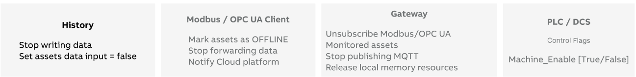 When an equipment instance is disabled, only future real-time interactions are stopped, the asset is marked as legacy, and system overhead is reduced. Disabling an instance allows equipment to be reactivated in the future.