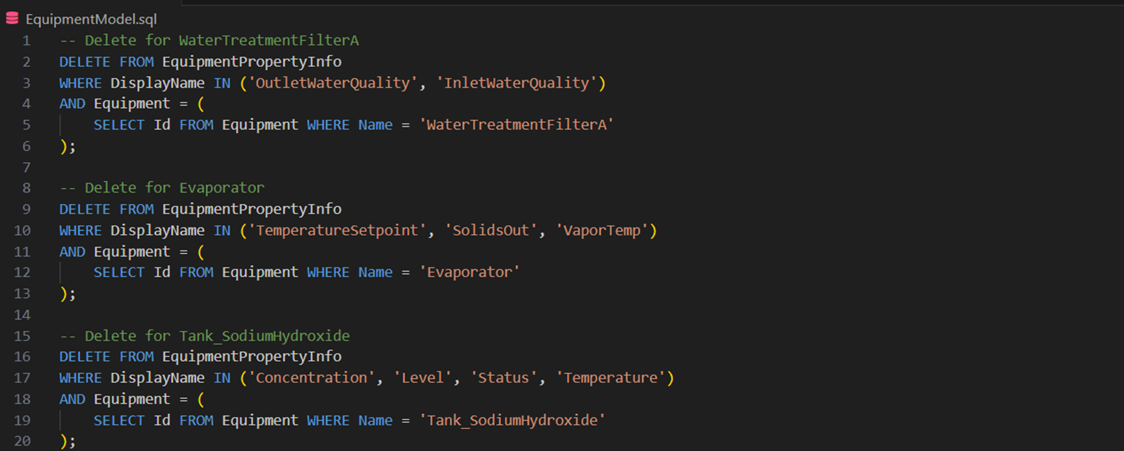 DELETE FROM EquipmentPropertyInfo(s) WHERE Mask(DisplayName[Name]/Id)='' AND Equipment(EquipmentId)='';