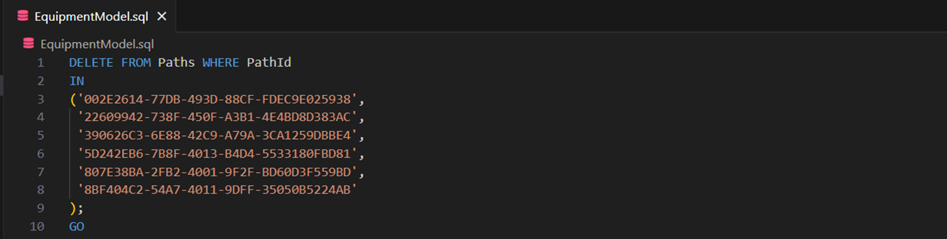 DELETE FROM Path(s) WHERE Mask(Name/Id[PathId])IN();