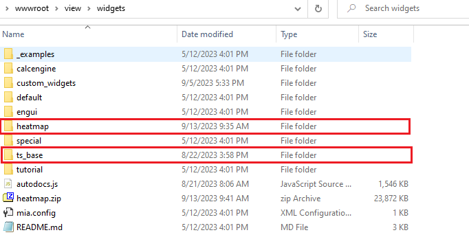 - Unzip the file 'heatmap.zip' into C:\inetpub\wwwroot\view\widgets folder