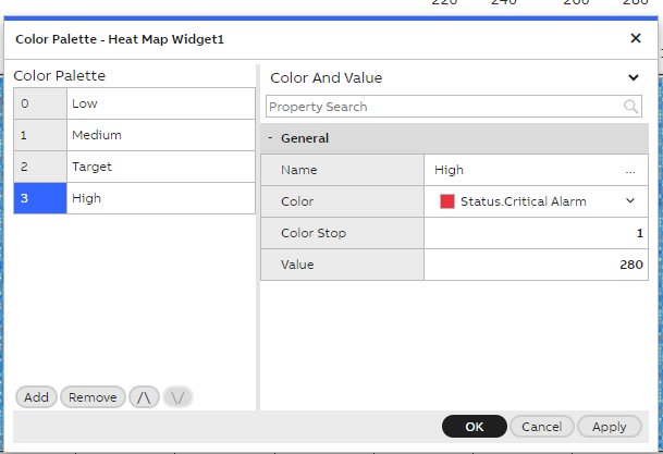 Addition to that if user wanted to have their own color gradients we have a widget property called 'Color Palette', clicking on the 'Color Palette' opens the below pop up as shown in the screenshot.