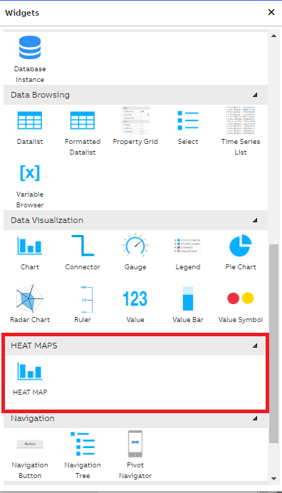 Open the view application and create a new dashboard, and switch to edit mode. On opening the widget library, user can see a custom widget called 'HEAT MAP' in the 'HEAT MAPS' section as shown in the below screenshot.