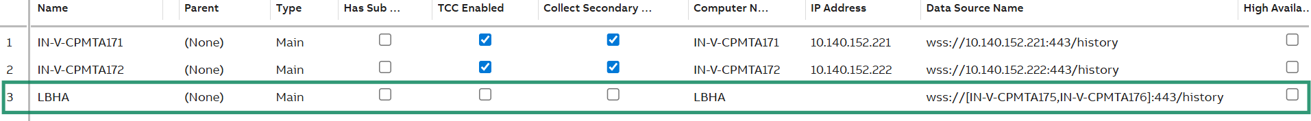 <add key="AlternativeServers" value="wss://IN-V-CPMTA204:443/history" /> ## This is the connection string of the other HA