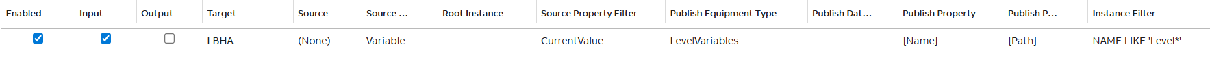 if you want to publish all the variable which starts with ‘Level’ you can provide following entry in ‘instance filter’ column.