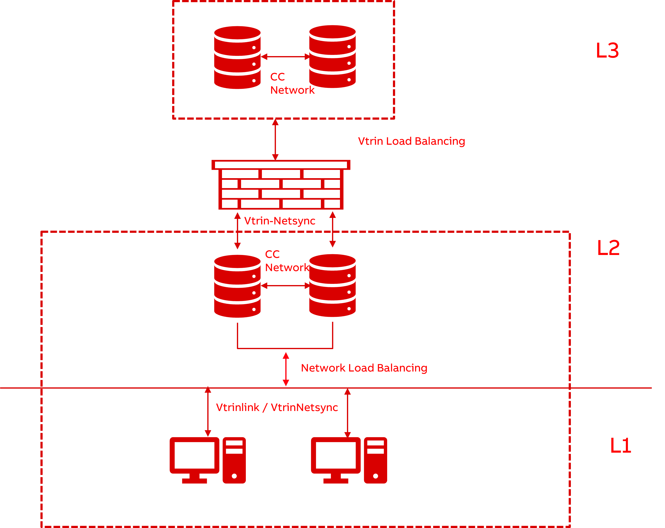 This system comprises three levels: L1 features DCNs that transfer Tag/Variable-based data to the L2 HA system. This data is then transferred from the L2 HA to the L3 HA systems via Netsync publication. For L3 history servers, the document will later detail configuring Vtrin Load Balancer (VLB) instead of Windows Network Load Balancer (NLB).