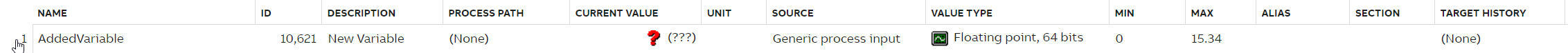 "Name is: AddedVariable. Max value is: 15.340."