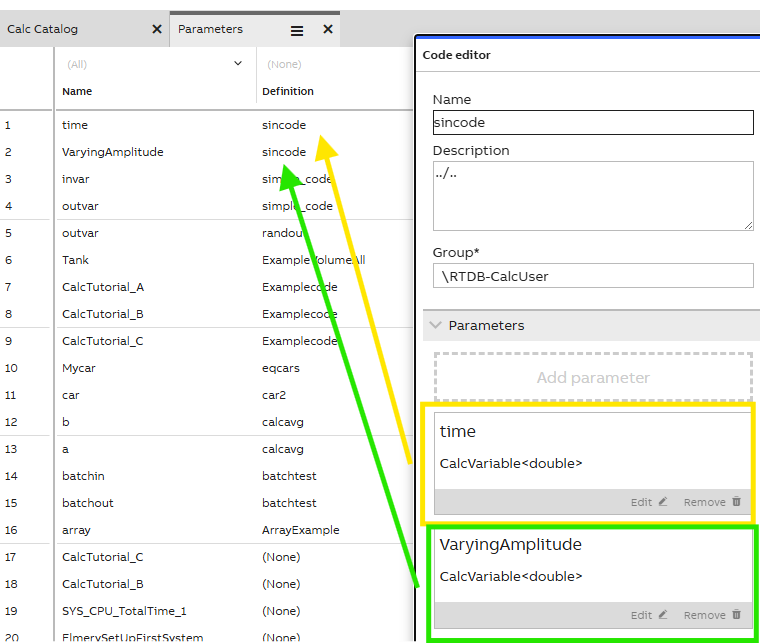 | Name | String | The name with which the parameter is used in the CalcDefinition code. |
