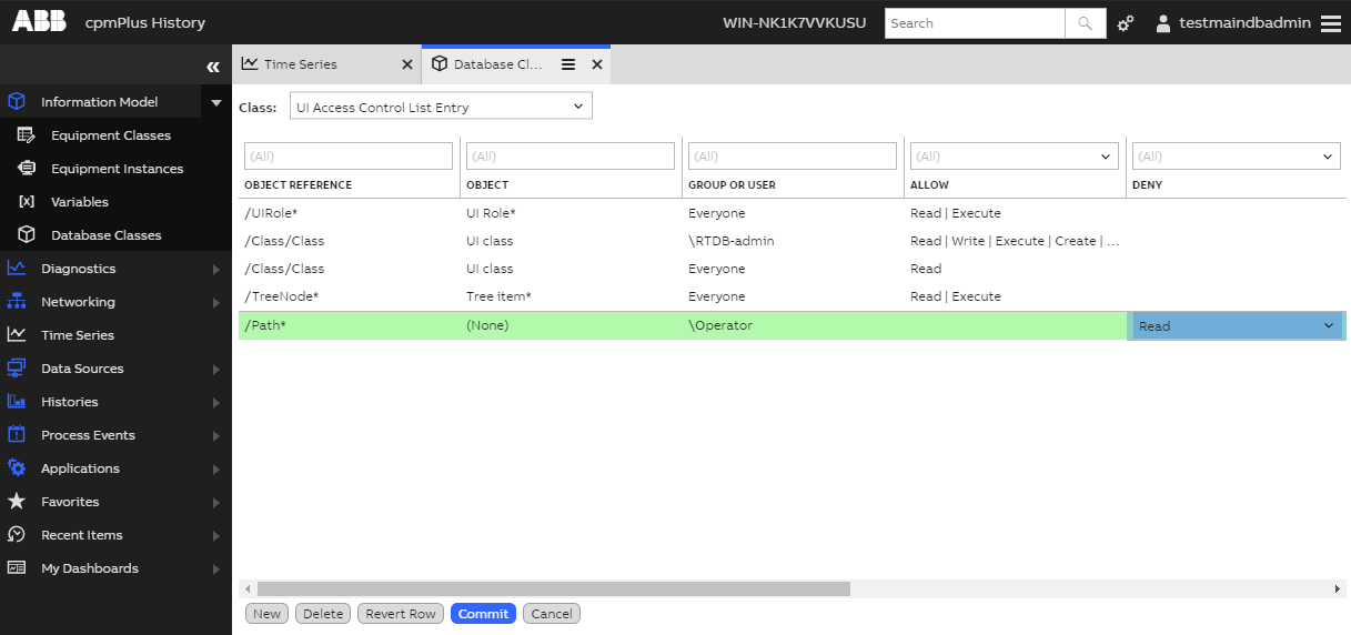 - From the Class dropdown at the top, select UI Access Control List Entry.