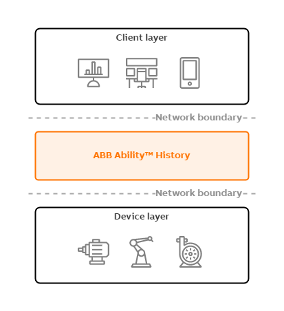 The purpose of this page is to provide an overview of the layered architecture of ABB Ability™ History.