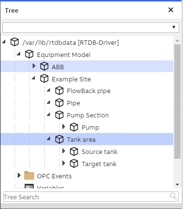 The process path root instance refers to instances in the process path which describes Equipment Model. In a fresh system with the added pump model, the Equipment Model looks like this: