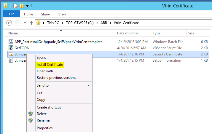 - Bring the exported certificate to the server. Right-click the file and select Install Certificate.