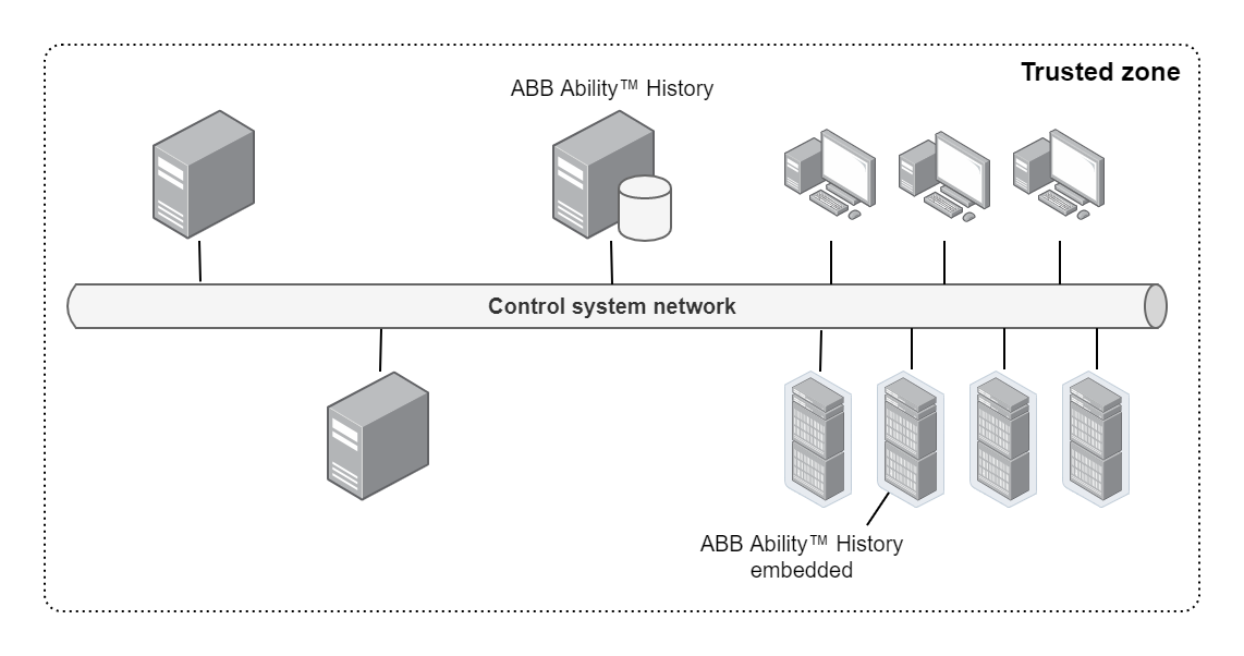 When ABB Ability™ History is used as an embedded historian for some control network or a similar system, it is considered as part of the control system's trusted zone.