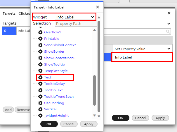 Select the widget as 'InfoLabel' and choose the Text option of the Label widget.