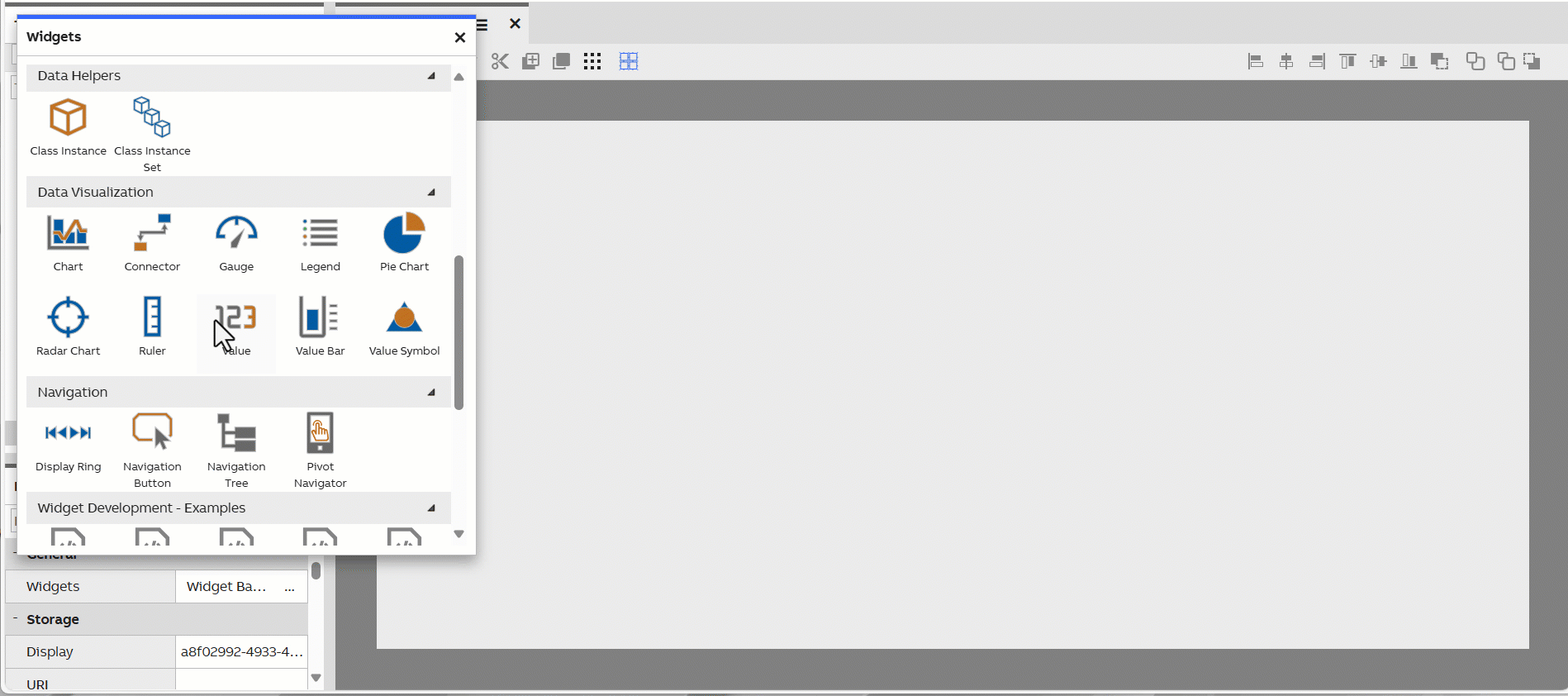 Value is a simple widget used to display a single data value, passed to it through context. It can utilize a Value Accessor to format the displayed data.