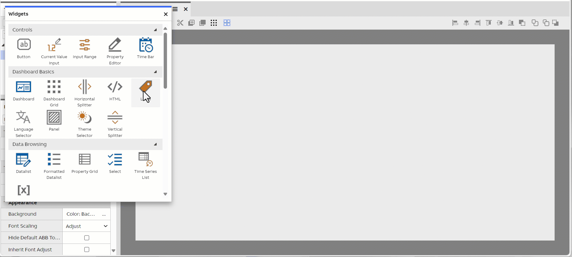 Label is the simplest widget for displaying text on your dashboard. You can change the text content from the Text property of the widget. Label supports scaling the font size automatically based on the window's size. The limits for this can be configured in the Font property of the widget.