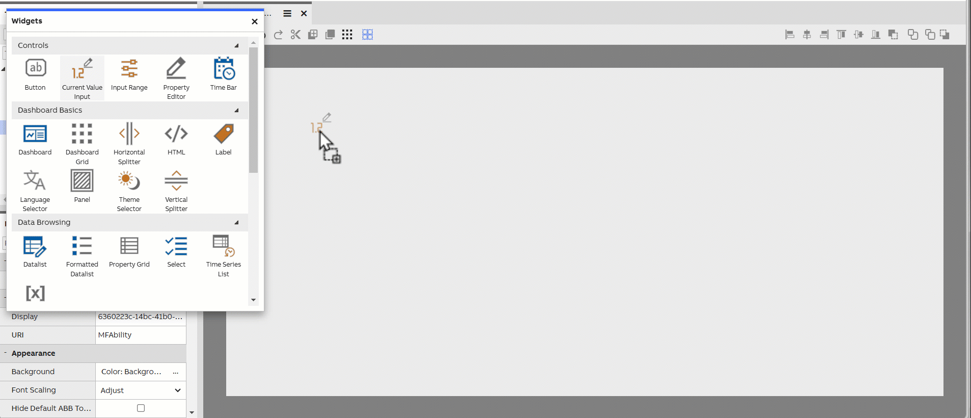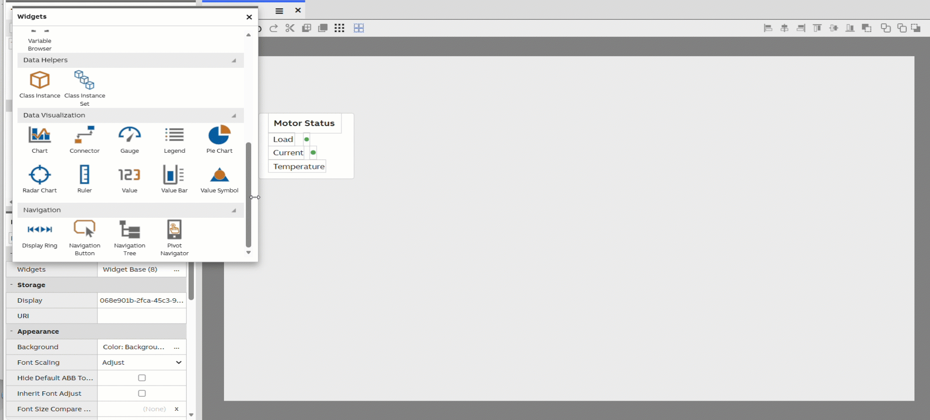 This is a widget that can be used for editing or showing properties in widgets or other components. It is configured by selecting a target component and a property to be edited. After selecting these, it will automatically assign a suitable editor for editing the property.