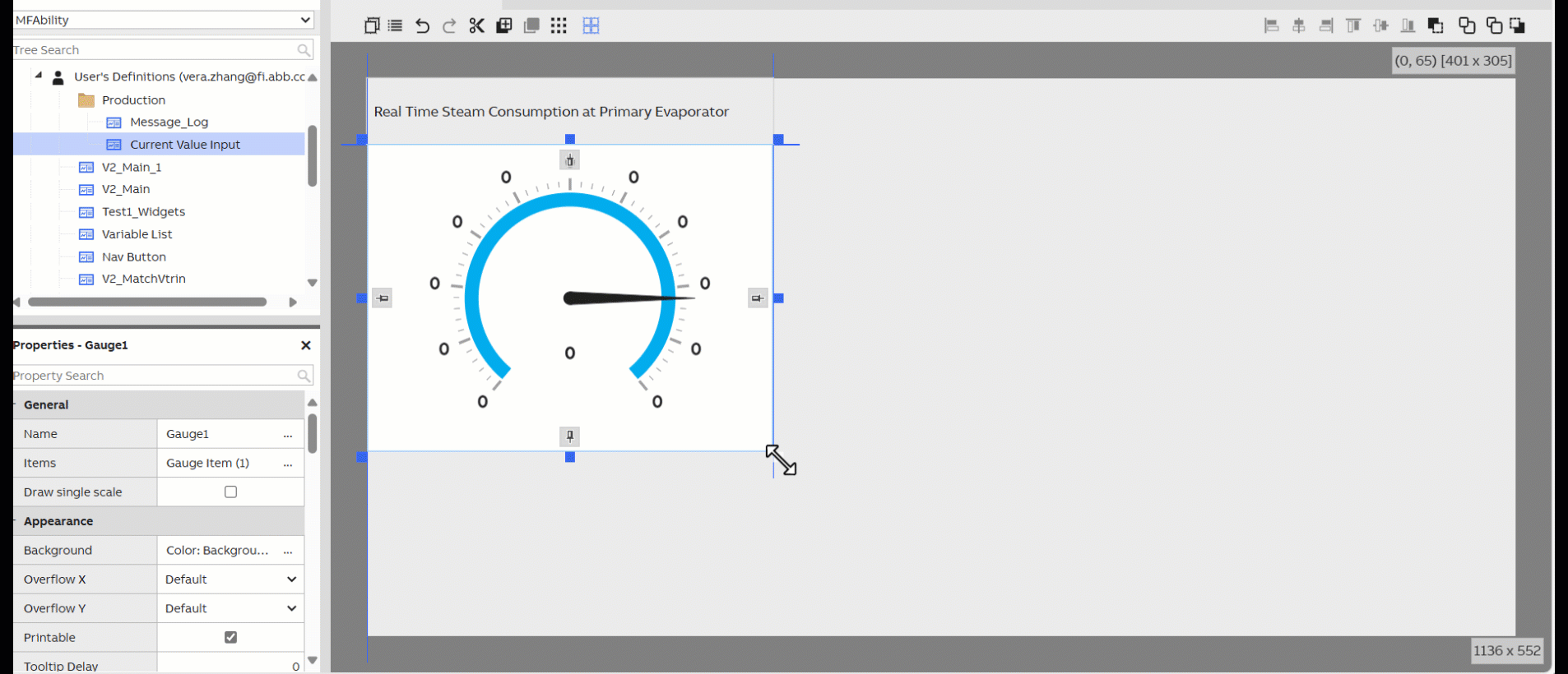 The Gauge widget works similarly to the Value Bar widget but with a more skeuomorphic design. It allows you to display numerical values within a range using a needle inside a circular scale. It can also be animated.