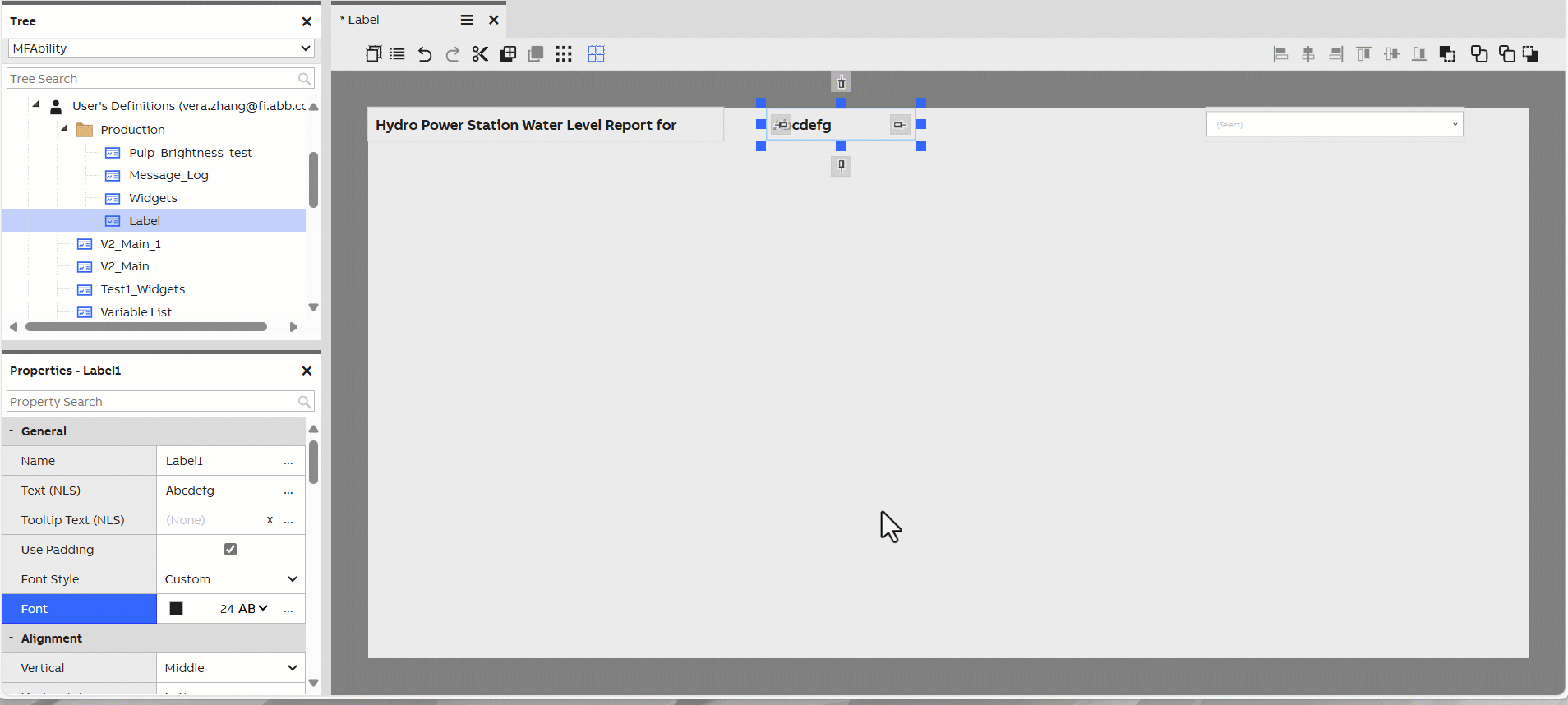 The Select widget allows your user to browse a list of equipments in a dropdown menu and select one of them. The selected equipment can be passed through context for other widgets to use. Source to select widget may be configured on widget properties.