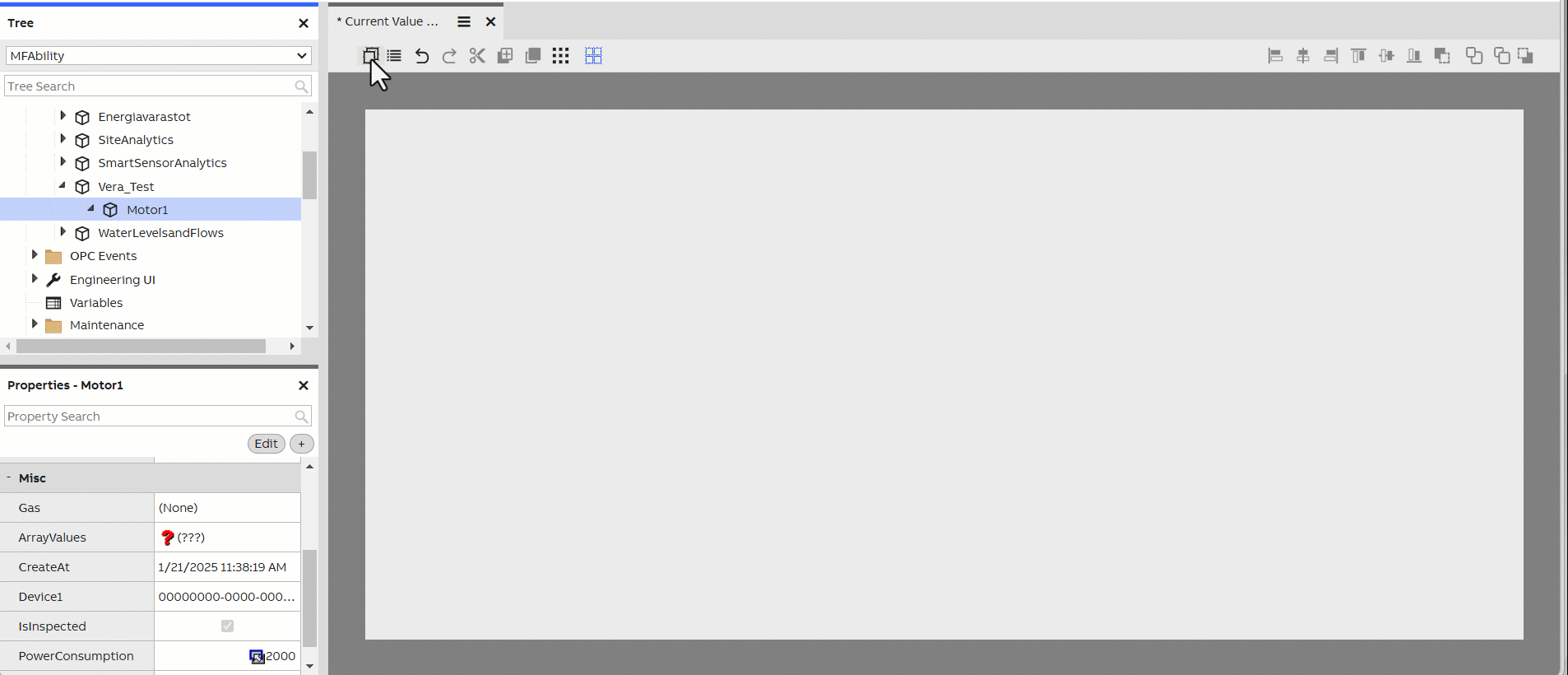 The Current Value Input widget can be used for entering current values for a Variable or an Equipment Property. Please note that data may be added with "drag&drop" feature.