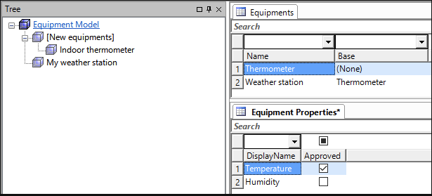 The receive rule has to be able to match all four of these. The other types are matched the same way as properties. For a rule, the object type is also specified. Also, any field in the equipmentdefinition can be matched. Additionally, the rule can match an Equipment. In that case, the rule applies to everything that is contained in that Equipment including properties and subequipment.